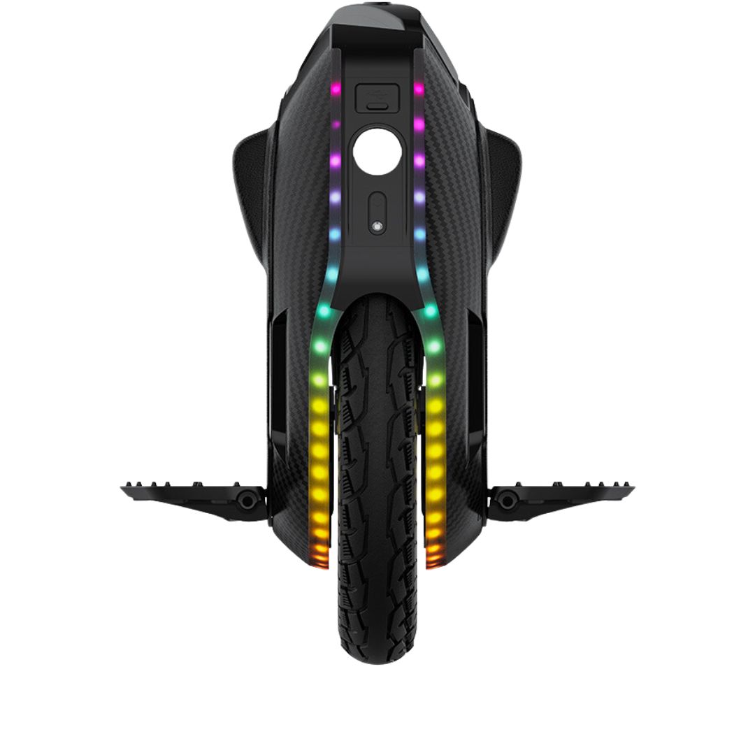 Zusätzlich ist der 16X mit leistungsstarken 5W 800lm-Frontlichtern ausgestattet, die für sicheres Fahren im Dunkeln sorgen, sowie mit integrierten Lautsprechern für ein immersives Klangerlebnis. Über die KingSong-App kannst du dich einfach per Bluetooth verbinden, um den Fahrzeugstatus, die Batterieinformationen und die Beleuchtung zu verwalten. Mit einem Gewicht von 24,3 kg und einer maximalen Steigungsfähigkeit von 35° ist der KingSong 16X für verschiedenste Terrains und Fahrstile bestens geeignet.