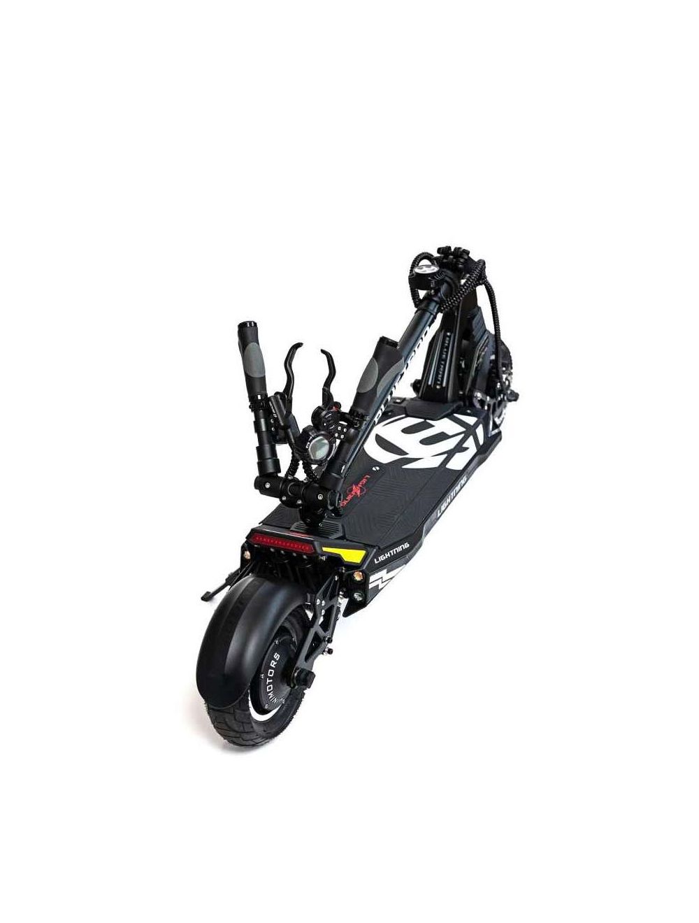 Der BLUETRAN LIGHTNING erreicht eine Höchstgeschwindigkeit von 90 km/h** und kann Steigungen von bis zu 60 % bzw. 31 Grad überwinden. Zu den Sicherheitsmerkmalen gehören hydraulische Bremsen vorne und hinten und elektrisches ABS sowie LED-Leuchten und eine maximale Tragfähigkeit von 120,2 kg (265 lbs).