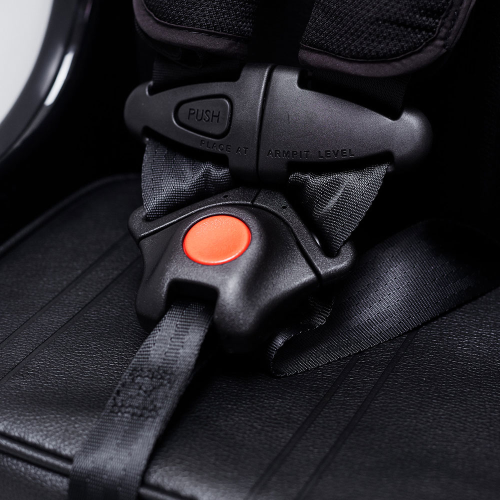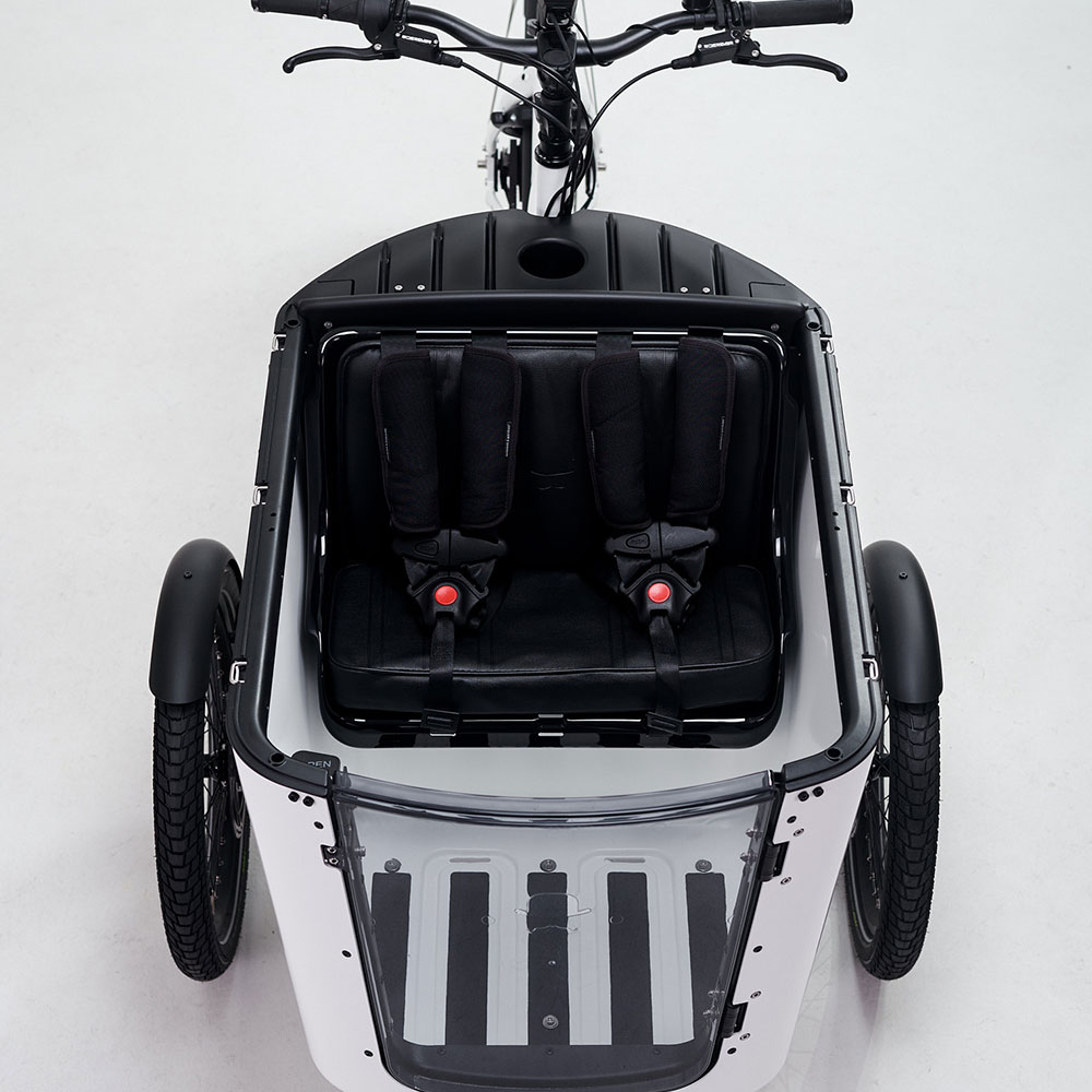2x 5-Punkt-Gurte und Sitzkissen für Sicherheit und Komfort.