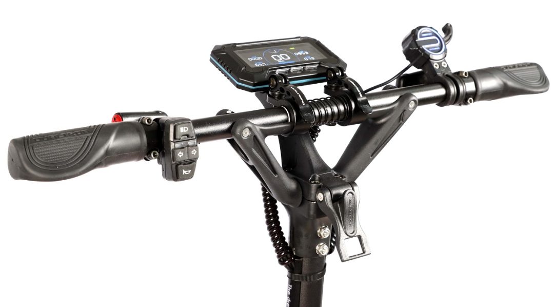 Zusätzlich sorgt die Kombination aus leistungsstarkem Scheinwerfer, Blinker und einem leisen Horn für mehr Sicherheit und Komfort im Straßenverkehr. Die ZOOM-Hydraulikbremsen gewährleisten eine präzise und zuverlässige Bremsleistung, die das Fahrerlebnis noch sicherer macht. Der Dualtron Spider Max (EY4) ist somit die perfekte Wahl für alle, die auf der Suche nach einem leistungsstarken, robusten und technisch fortschrittlichen E-Scooter sind.