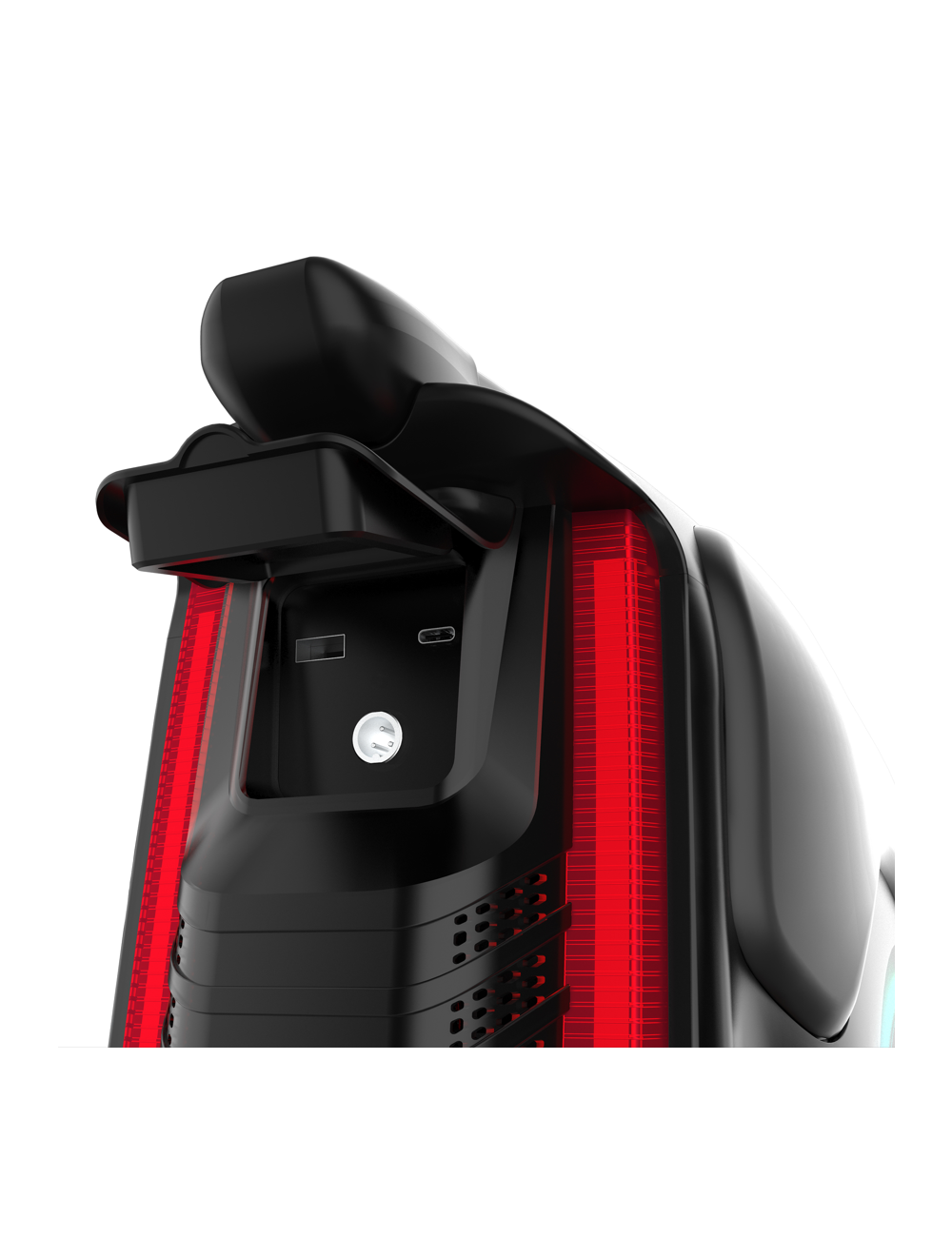 Der V12 ist mit vier Stereolautsprechern ausgestattet, die im hinteren und vorderen Teil des Lenkrads angebracht sind, um eine gleichmäßige Klangverteilung zu gewährleisten. Der Klang ist laut und angenehm für die Ohren. Wir können auch über den bekannten integrierten Ständer des V11 schwärmen, da er auch im V12 vorhanden ist, aber dieses Mal sieht er robuster und stabiler aus. Der Ladeanschluss am Rad ist bereits beim Veteran Sherman und einigen Begode-Rädern zu sehen und gibt uns die Freiheit, eine größere Auswahl an Ladegeräten mit bis zu 10 Ampere zu verwenden. Die nächste Funktion ist etwas Neues auf dem EUC-Markt – ein digitales Diebstahlschutzschloss! Es ermöglicht Ihnen, Ihr Rad mit einem PIN-Code über das Display zu sperren. Der Scheinwerfer des V12 verfügt über drei Betriebsmodi und einen automatischen Lichtsensor. Außerdem gibt es auf beiden Seiten der Schale eine RGB-Umgebungsbeleuchtung, die Sie nach Belieben einstellen können. Und zu guter Letzt, und das wird Sie wahrscheinlich begeistern, verfügt das Rad über eine zertifizierte Wasserdichtigkeit.