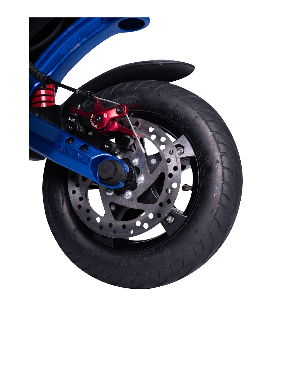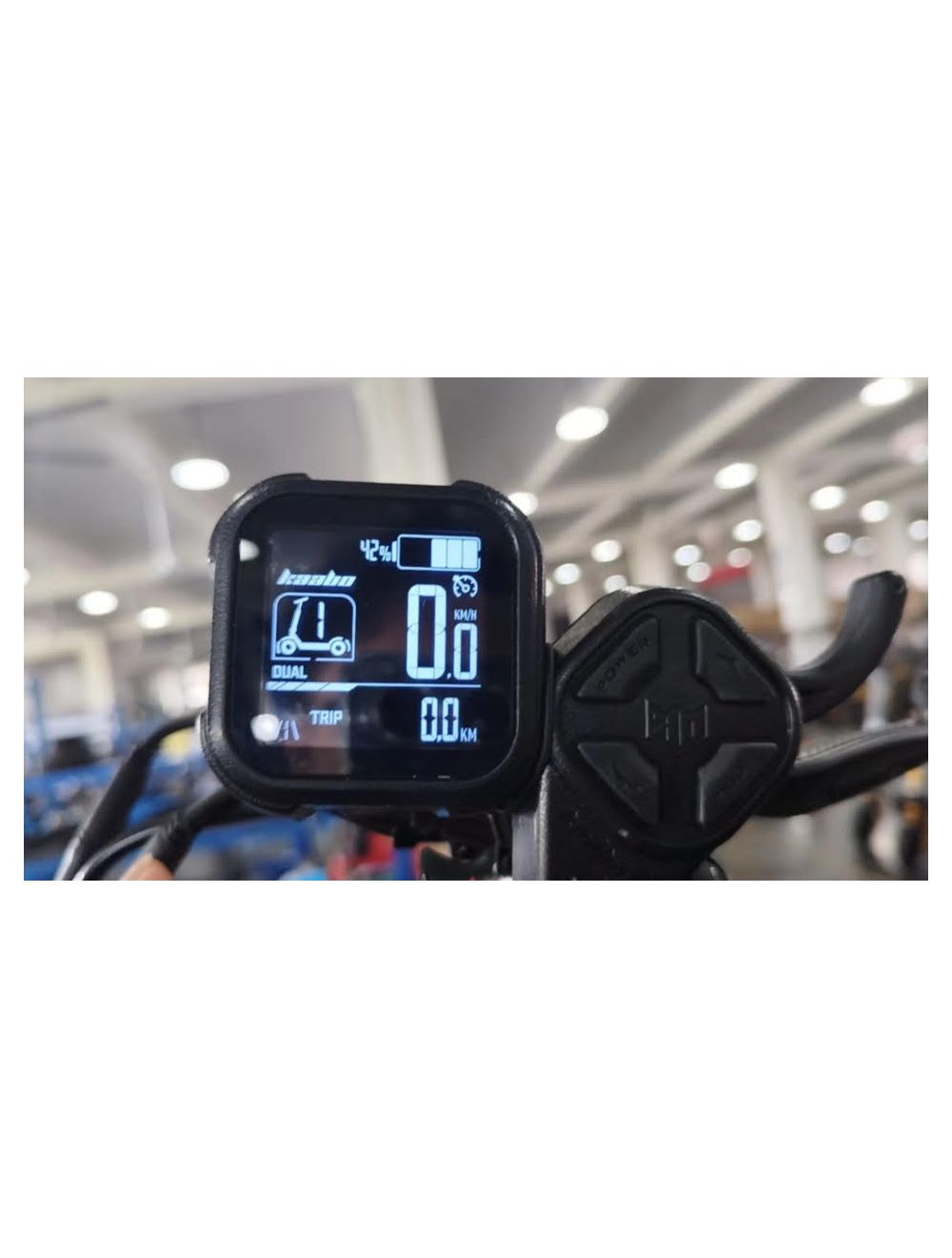 Scheibenbremsen vorne und hinten sowie eine elektronische Bremse sorgen für volle Kontrolle während Ihrer Fahrt. Die Display/Gas-Kombination ermöglicht die Konfiguration von Geschwindigkeitsbegrenzung, Tempomat und regenerativer Bremskraft.