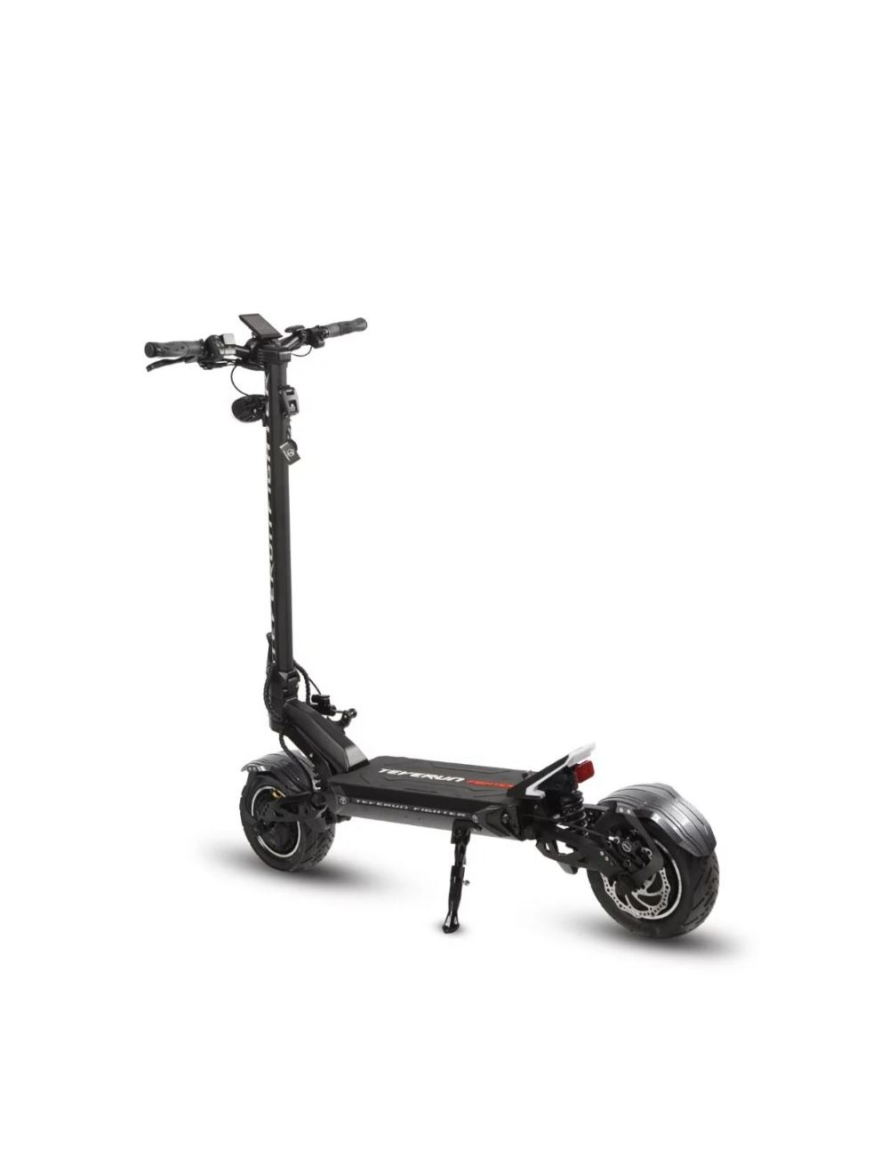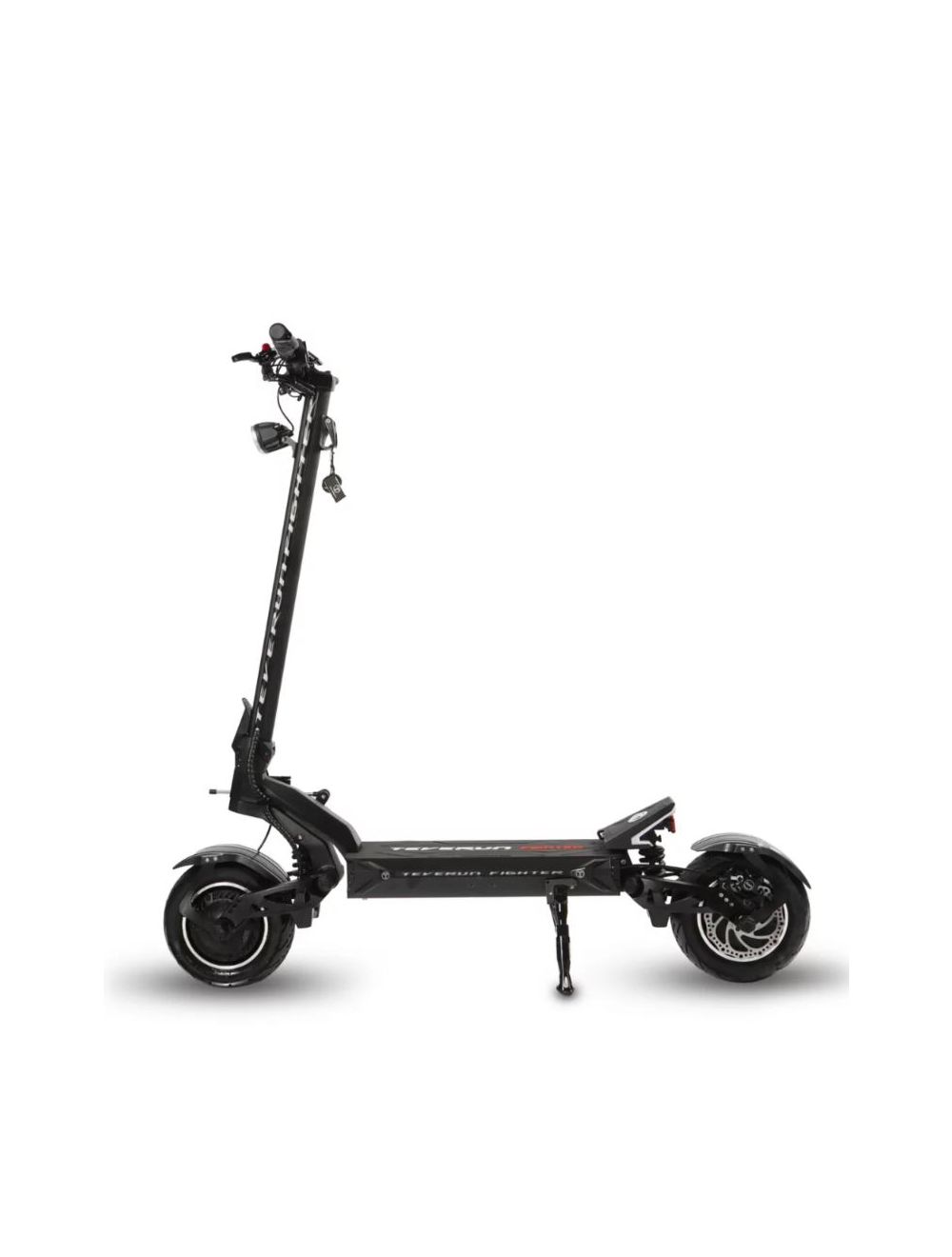 Die Elektroroller Teverun Fighter Eleven und Teverun Fighter Eleven+ bieten unübertroffene Sicherheitsfunktionen, um den Fahrern eine sichere und reibungslose Fahrt zu gewährleisten. Eines der herausragenden Merkmale ist der Lenkungsdämpfer , der die Stabilität und das Handling verbessert und es dem Fahrer erleichtert, problemlos durch verschiedene Gelände zu navigieren. Das Modell Fighter Eleven ist mit einer Federfederung ausgestattet, während das Modell Fighter Eleven+ über eine einstellbare hydraulische Federung verfügt, die an unterschiedliche Fahrbedingungen angepasst werden kann.