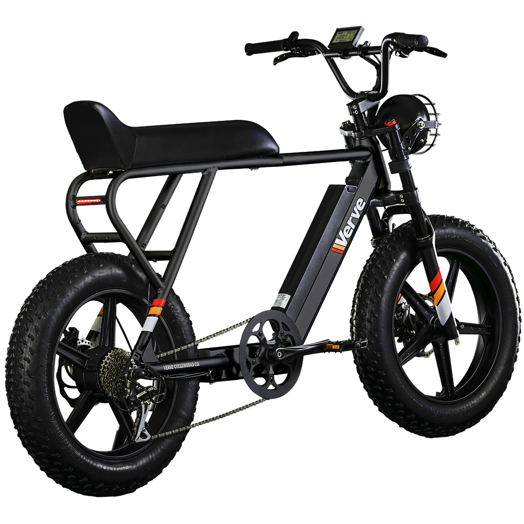 Das Verve Pantera in Mattschwarz ist das Prunkstück von Verve und derzeit eines unserer besten Elektro-Fatbikes. Sie fahren mit dem Verve Pantera ohne obligatorische Versicherung (wir empfehlen eine), einen Führerschein und jedes Alter kann dieses Elektrofahrrad fahren. Der herausnehmbare Akku hat eine Reichweite von bis zu 70 Kilometern und eine Geschwindigkeit von 25 km/h. Der Verve Pantera verfügt über eine integrierte Beleuchtung und einen stabilen Sattel für lange Fahrten.